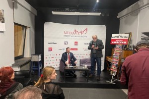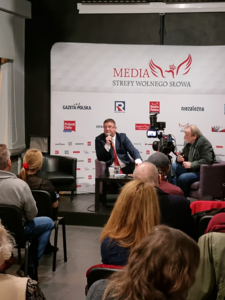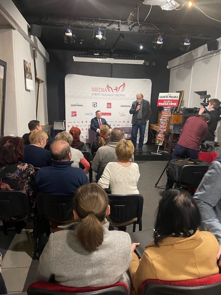 W dniu wczorajszym, tj. 17.02.22r. w siedzibie Stowarzyszenia Wolnego Słowa, przy ulicy Marszałkowskiej 7, o godzinie 18:00 odbyło się spotkanie członków i sympatyków Warszawskiego Klubu Gazety Polskiej z panem Michałem Wójcikiem (Solidarna Polska), Ministrem Konstytucyjnym członkiem Rady Ministrów RP. Spotkanie z panem Ministrem Michałem Wójcikiem zostało zorganizowane z inicjatywy Warszawskiego Klubu Gazety Polskiej – przewodniczący Adam Borowski oraz Młodzieżowego Klubu Gazety Polskiej Warszawa Mokotów – przewodnicząca Agnieszka Terczyńska. Współprowadzącym był pan redaktor Tomasz Sakiewicz, a obsługę medialną dla całości wydarzenia zapewniły: Tv Republika oraz TVP (dzięki uprzejmości pana redaktora Jarosława Olechowskiego szefa ,,Wiadomości”).