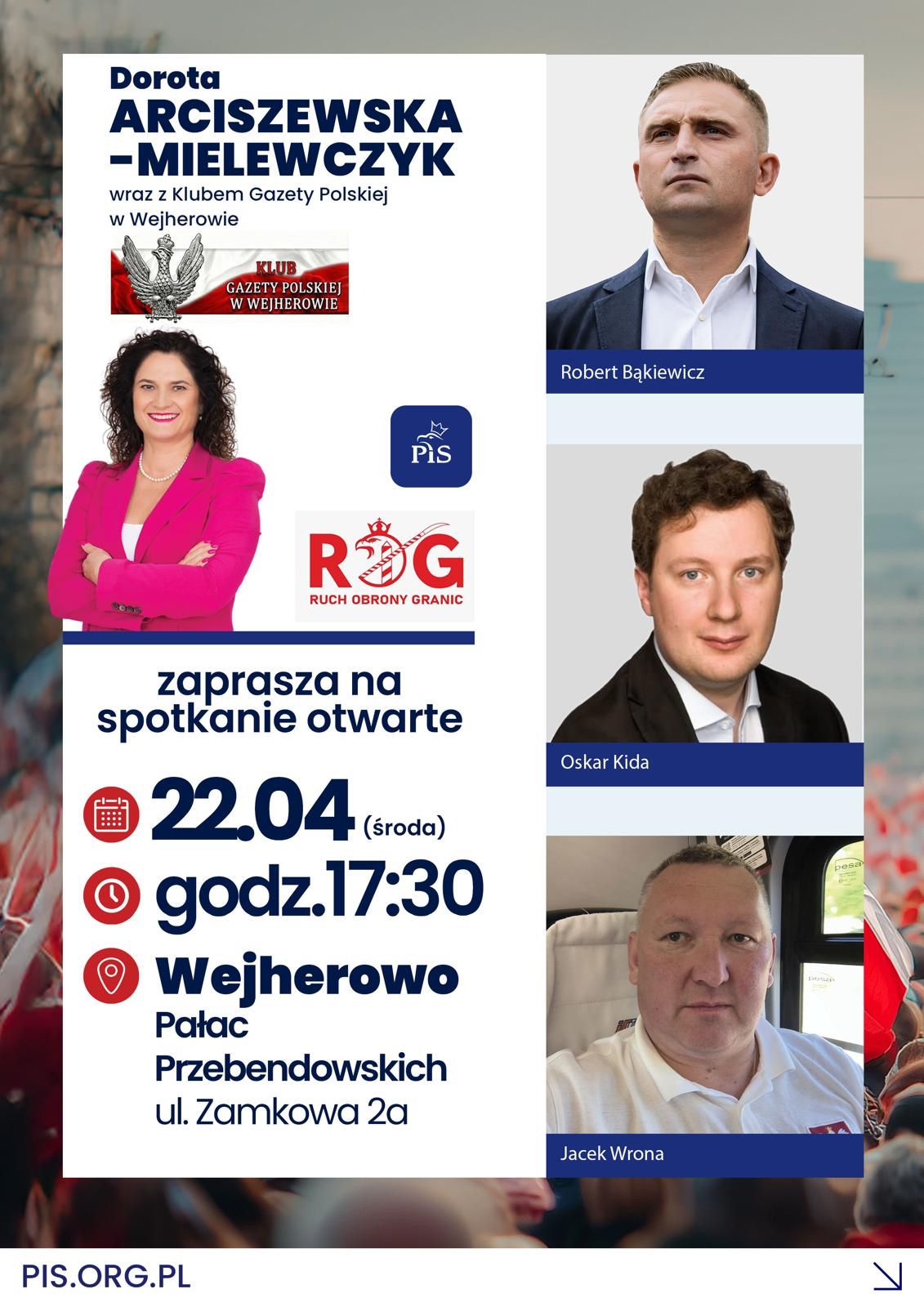 WEJHEROWO | ZAPROSZENIE 22.04 – Spotkanie otwarte z R. Bąkiewiczem, Oskarem Kidą i Jackiem Wroną