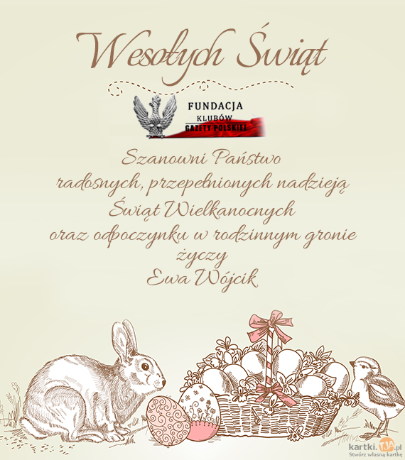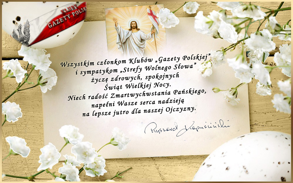 Wszystkim członkom Klubów „Gazety Polskiej” i sympatykom „Strefy Wolnego Słowa” życzę zdrowych, spokojnych  Świąt Wielkiej Nocy.