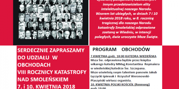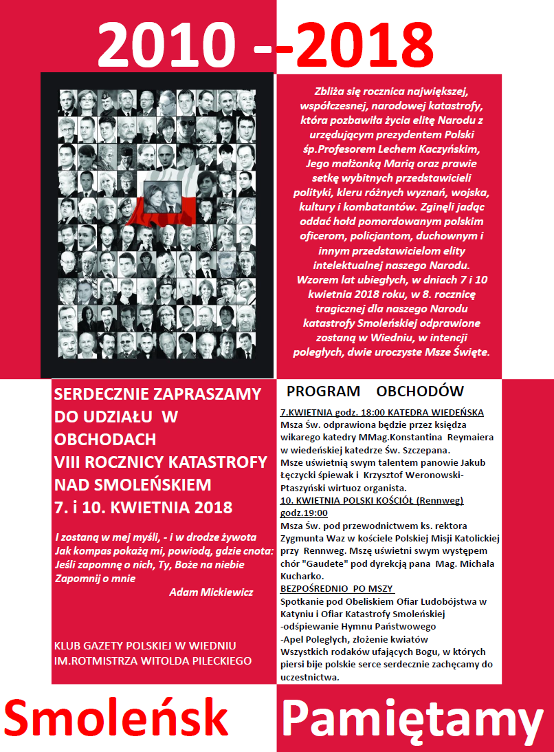Wiedeń II – Zaproszenie na 8 rocznicę tragedii pod Smoleńskiem, kw. 7, 2018 Kluby GP Tragedia smoleńska, Wiedeń II (Austria) Tagged Tragedia smoleńska-miesięcznice, Wiedeń II (Austria) Wstecz Dzierżoniów II – Zaproszenie na obchody 8 rocznicy tragedii pod Smoleńskiem, 10 kwietnia godz. 18:00 Dalej Apel – 10 kwietnia 2018 r.