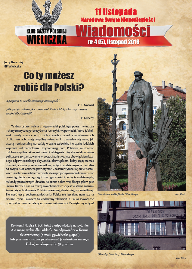 Kolejny numer Gazety -” Wiadomości”- Klubu Gazety Polskiej w Wieliczce do przeczytania.