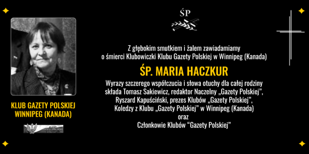 o śmierci Klubowiczki Klubu Gazety Polskiej w Winnipeg (Kanada)