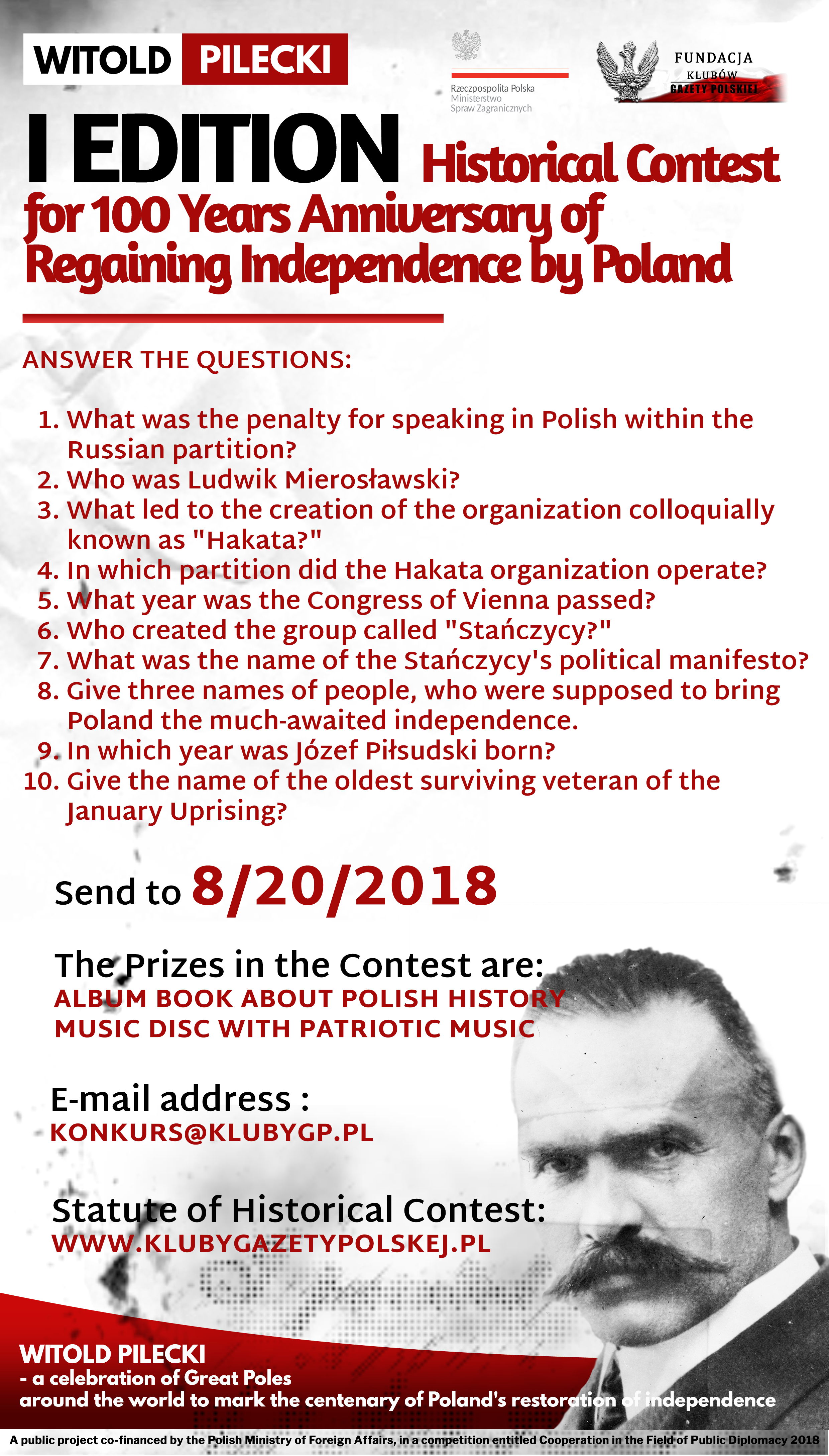 WITOLD PILCKI – I edition Historical Contest for 100 Years Anniversary of Regaining Independence by Poland