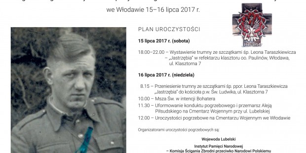 Włodawa – uroczystości pogrzebowe Śp. Ppor. Leona Taraszkiewicza „Jastrzębia”, 15-16 lipca Włodawa – uroczystości pogrzebowe Śp. Ppor. Leona Taraszkiewicza „Jastrzębia”, legendarnego dowódcy oddziały partyzanckiego Wolność i Niezawisłość na Lubelszczyźnie, 15-16 lipca. lip 4, 2017 Kluby GP Włodawa Tagged Włodawa Wstecz Gdańsk II – spotkanie autorskie z Arturem Dmochowskim, dziennikarzem, publicystą, 7 lipca Dalej V Marsz Pamięci Wołyń 1943 w Tychach, 11 lipca