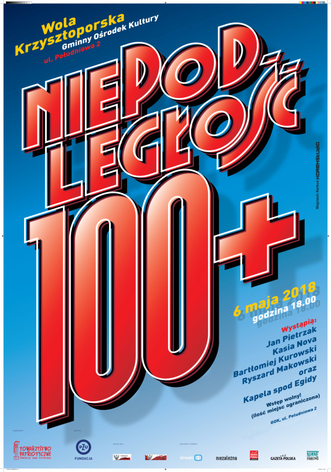 Pierwszy z  Koncertów „Niepodległość 100+” odbędzie się 6.05.2018 r. w Gminnym Ośrodku Kultury w Woli Krzysztoporskiej.