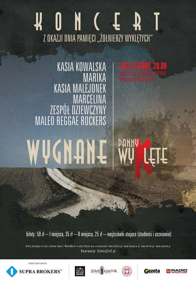 Wrocław – koncert Panny Wyklęte z okazji Narodowego Dnia Pamięci „Żołnierzy Wyklętych”, 3 marca, g. 20, ul. Purkyniego 1, Stary Klasztor, bilety w cenie od 50 zł do 25 zł do nabycia MediaMarkt w całej Polsce oraz w serwisach: www.biletin.pl, www