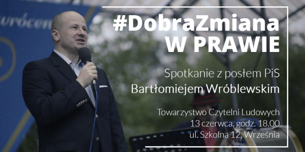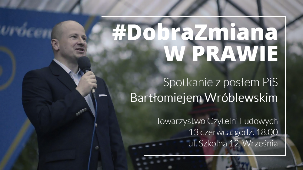 W dniu 13 czerwca gościem Klubu Gazety Polskiej we Wrześni był poseł Prawa i Sprawiedliwości Bartłomiej Wróblewski. Poseł, zasiadający w sejmowych komisjach sprawiedliwości i praw człowieka oraz ustawodawczej, wygłosił prelekcje na temat „Dobra zmiana w prawie”. Poruszył w niej tematy dotyczące zmian wprowadzanych przez rząd i parlament do wymiaru sprawiedliwości, przede wszystkim w Trybunale Konstytucyjnym oraz Krajowej Radzie Sądownictwa. Przedstawił również palące problemy, które pozostały do rozwiązania oraz trudności z tym związane. Zebrani zadali posłowi liczne pytania, dotyczące nie tylko tematu spotkania, ale również poruszające lokalne, wrzesińskie problemy. Poseł obiecał pomóc w ich rozwiązaniu i wyraził nadzieję, że to nie ostatnia jego wizyta we Wrześni.