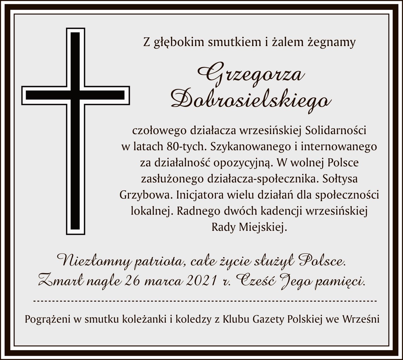 WRZEŚNIA | Z głębokim smutkiem i żalem zawiadamiamy o śmierci ✟ ŚP. Grzegorza Dobrosielskiego