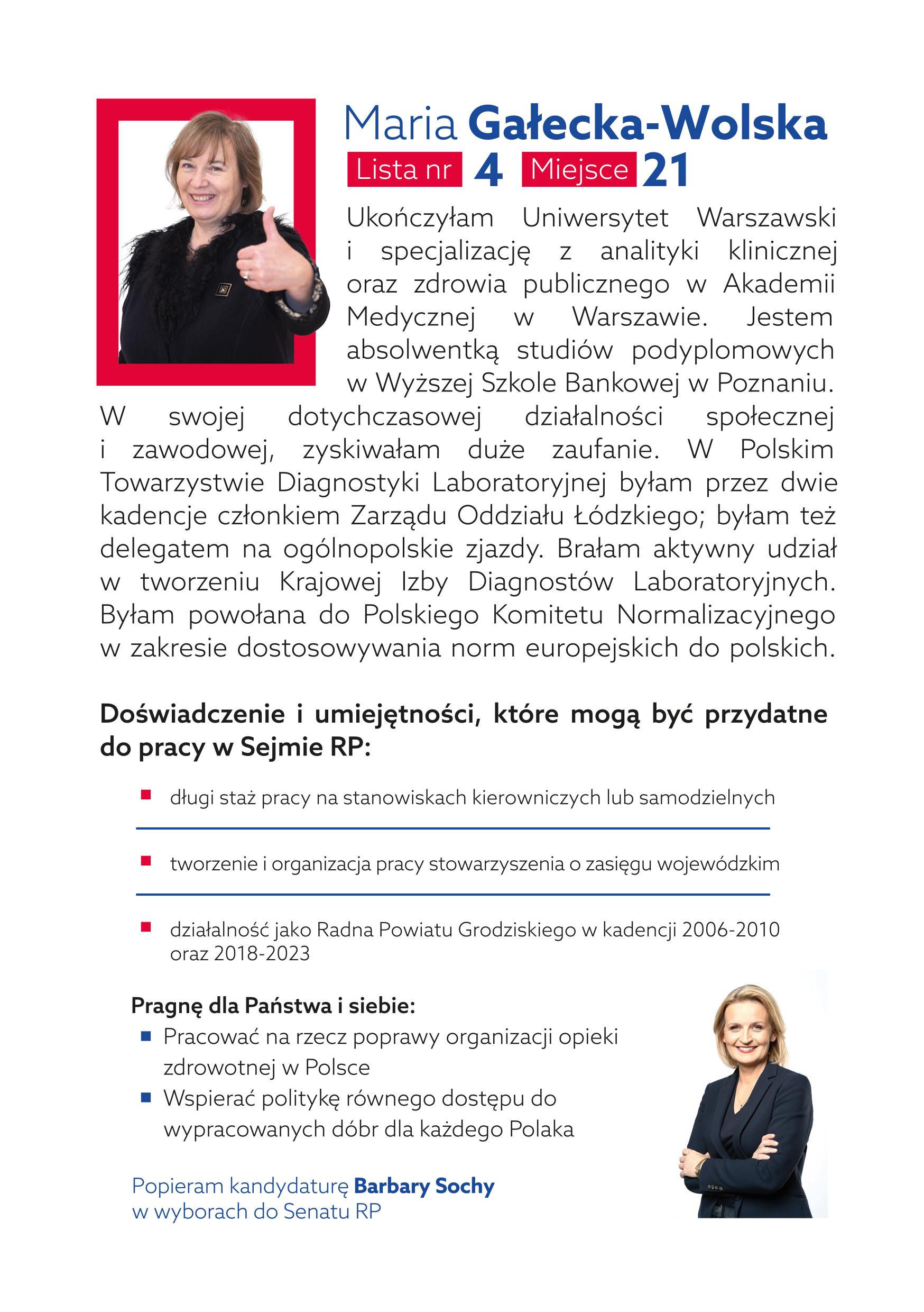 MARIA GAŁECKA-WOLSKA | numer 21 na liście PiS | Członek Klubu „Gazety Polskiej” Poznań