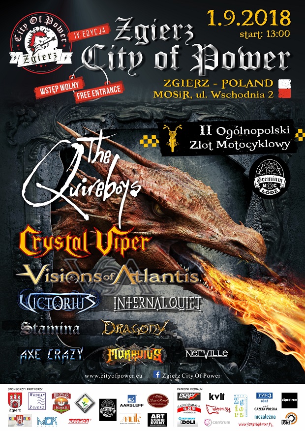 ZGIERZ City Of Power 2018 – koncert heavy i power metalu, 1 września, g. 13, na terenie Miejskiego Ośrodka Sportu i Rekreacji, ul. Wschodnia 2. Na imprezie wystąpią: THE QUIREBOYS, Crystal Viper, Visions of Atlantis, Victorius, Internal Quiet, Dragony, Stamina, Axe Crazy, Moravius, Nerville. Wstęp na koncert jest darmowy.