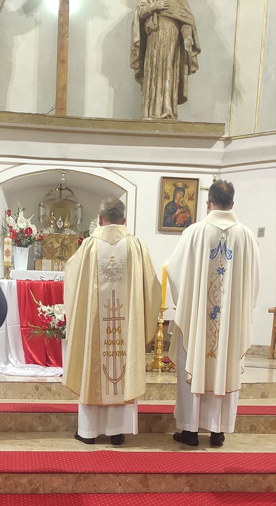 Piękna uroczystość i przemówienie patriotyczne Księży oraz Burmistrza Pana Dobrołowicza.